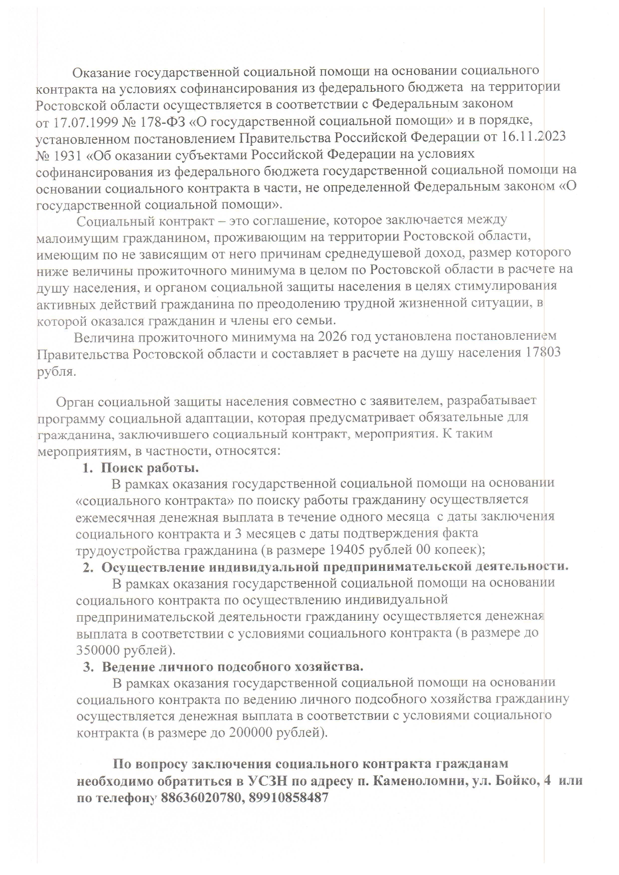 Информация по социальным контрактам